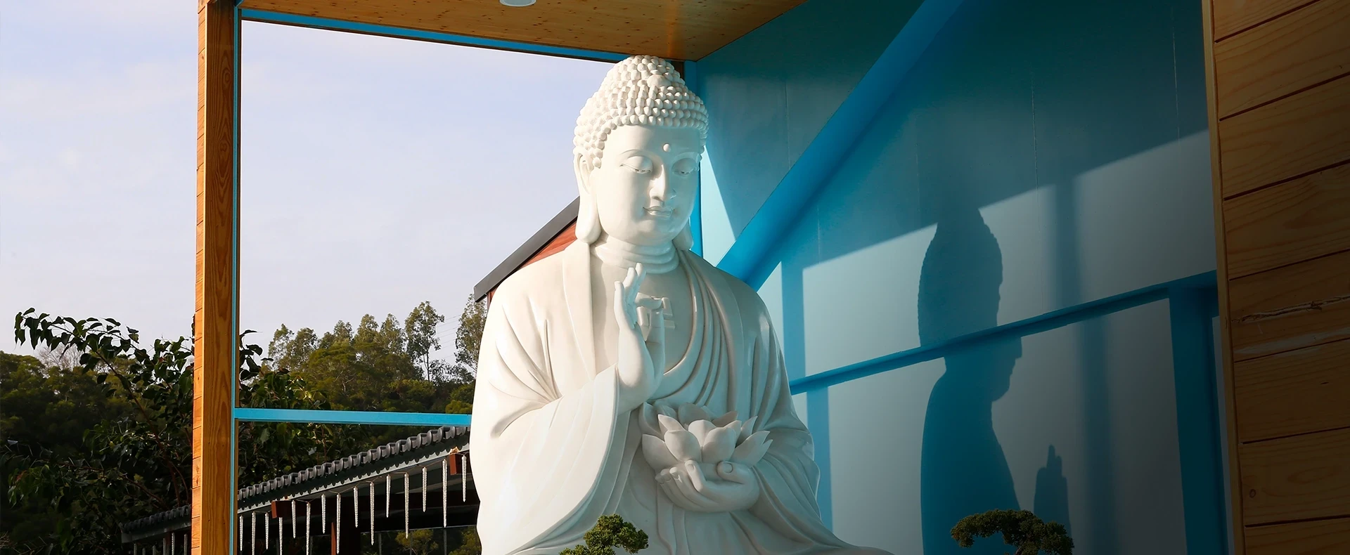 介紹一心淨苑環繞殿堂的戶外空間,從莊嚴的禮佛大道、開闊的草地,到清淨的水池與環山步道,提供一處結合自然與修行的沉浸式淨心場域。