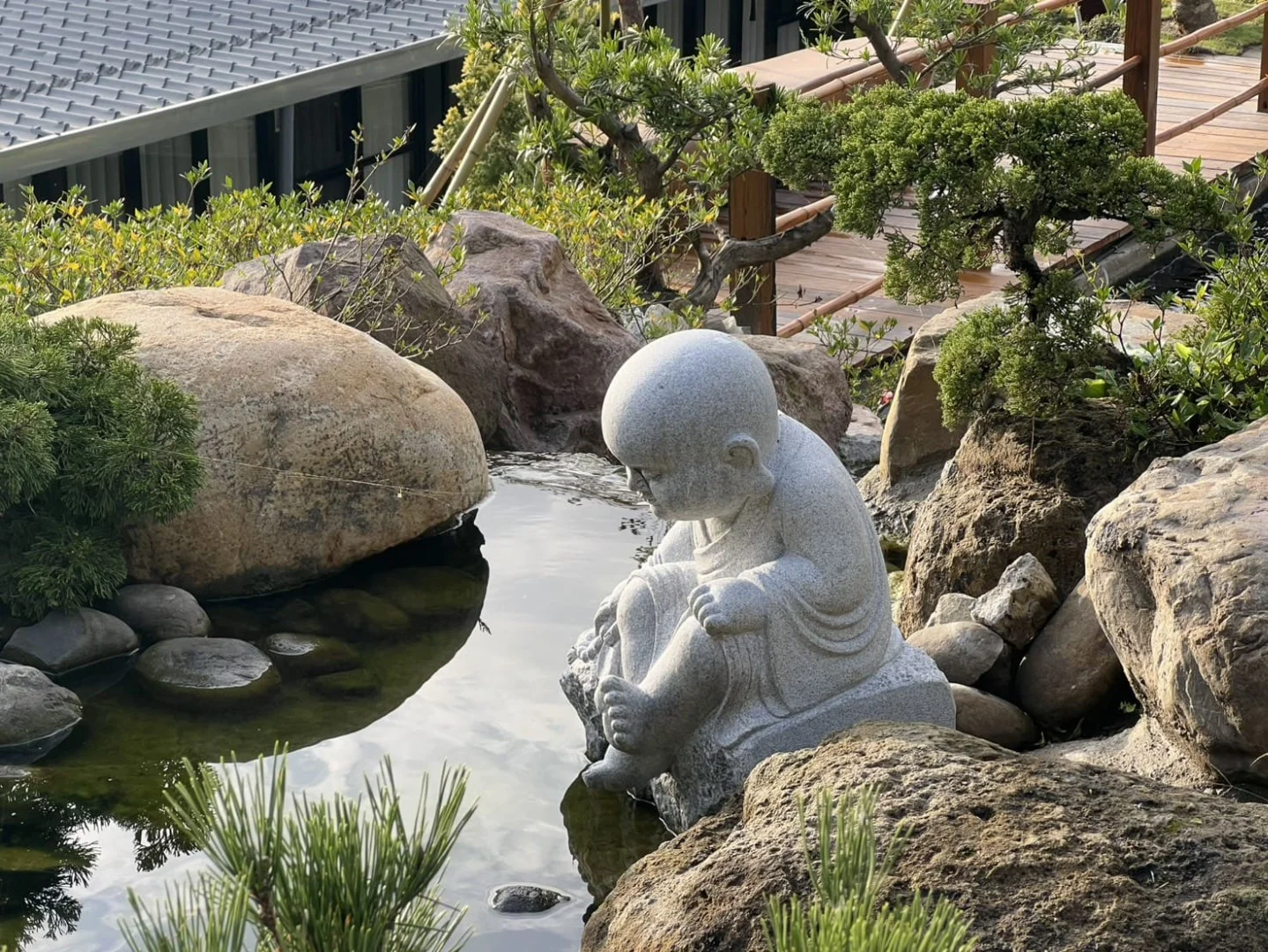 - 休憩設施: 每個水池邊都貼心設置了石桌與石椅。信眾或來訪者可以在此歇腳、飲茶,遠離殿堂內的喧嘩,享受片刻的寧靜。