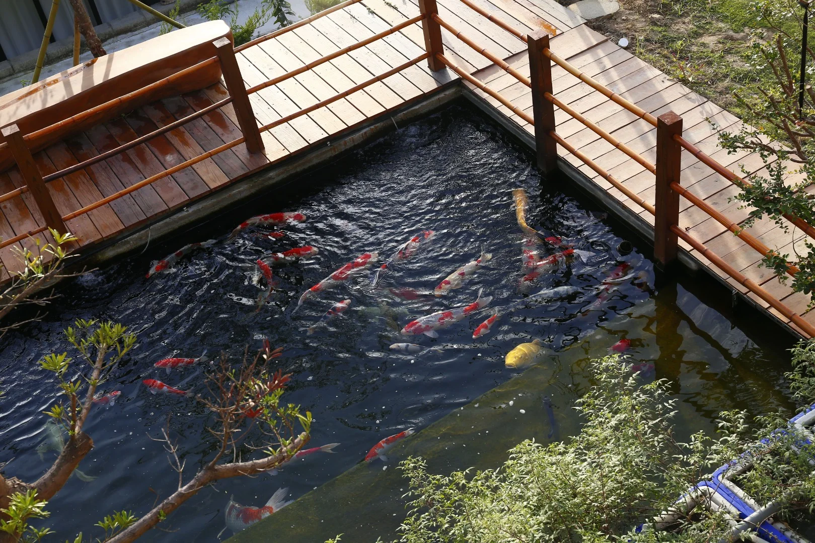 水池區域的功能不僅是景觀美化,更是重要的休憩與靜觀點: