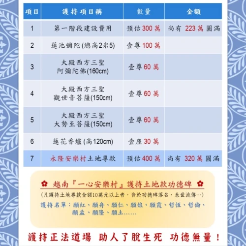 彌陀山一心淨苑(永隆分苑)護持項目