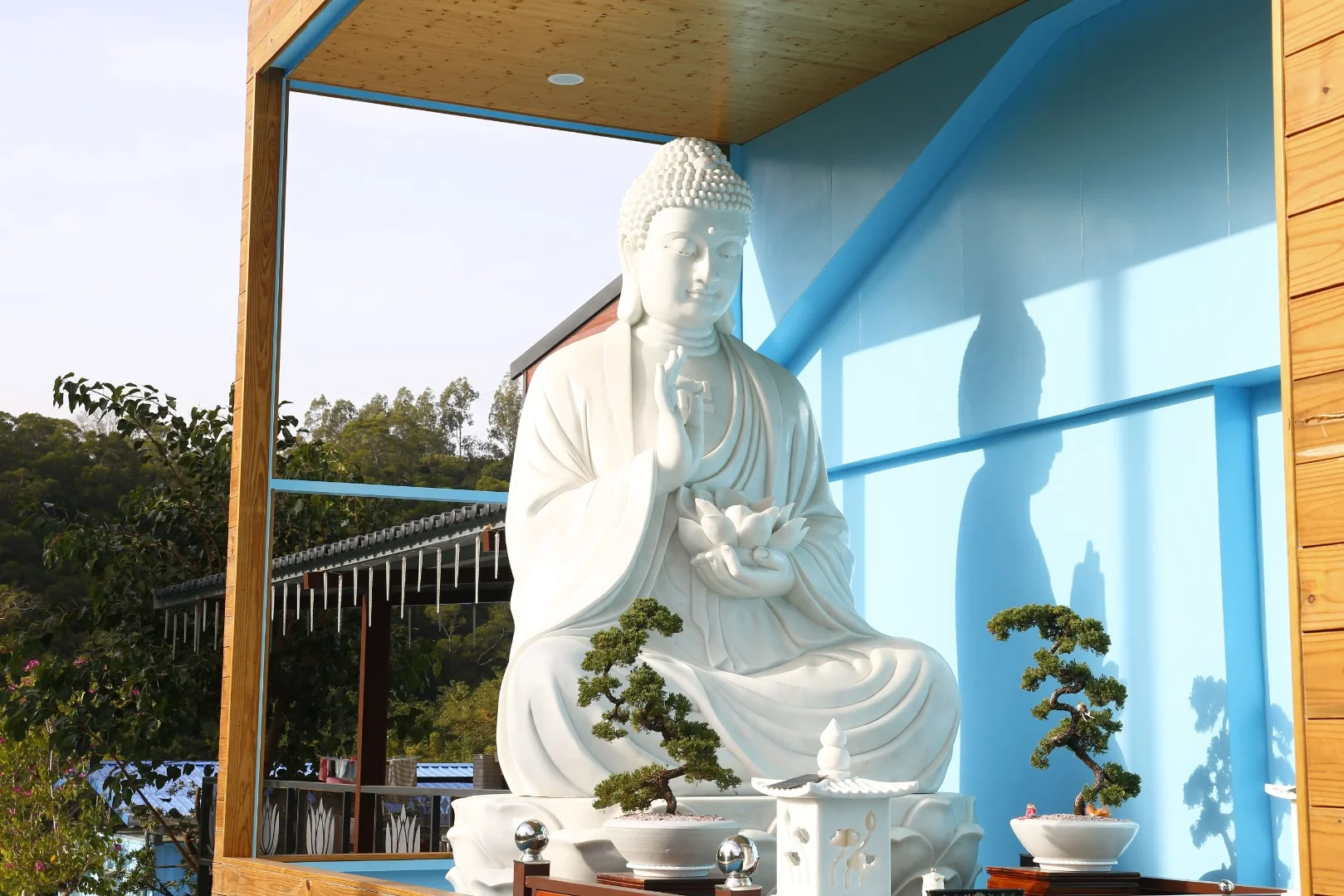 「迎子彌陀」造像的殊勝之處,在於其姿態體現了淨土法門的精髓——他力救度。佛像面容慈祥,身形高大,其接引的手勢彷彿隨時準備迎接念佛行者。這提醒了每一位踏入淨苑的信眾: